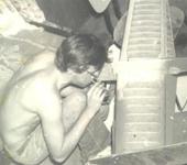 В центре, на самом авиамодельно-авиационном кресле (из бальзы, в виде части стабилизатора ЛА).Один из последних снимков БР-а.
