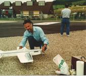 Юра Яценко с моделью Сигма, предшественница Классики. На модели первая модификация Discovery 60, 9 кубов с удлинённым с помощью упорки валом.