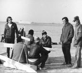 Из “связанных”, один Женя Петров, остальные с других модельных “областей”. С права Лауреат государственных премий Б.Л.Паценкер (многократный рекордсмен Мира по моделям вертолетов и, кажется пятикратный Чемпион СССР в классе F-3A)