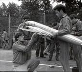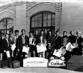 На снимке Югов сидит, Петров держит Ил-18, за ним стоит Борис Киселёв, последнего знаю, как облупленного, был у него первым постоянным механиком. Буквально вытащил его на МАП в Харькове в 68 году, где мы с ним проиграли только Акимову, заняв второе место, это притом, что летал он на тяжеленных дровах и с Мк-12В. В 69 на МАПе в Ташкенте в финале Боря не мудрствуя, дал в морду своему сопернику, парень уже “лёг” и нам надо было просто долетать, так он схватил корды руками и наш самолёт тоже оказался на земле. Дисквалификация, спасибо хоть набранные очки у команды не отобрали. С этим же саратовским “орлом” мы пересеклись на МАПе в 72 в Саратове.