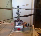 Когда-то это была Walkera 53-1,от неё осталась только рама и кое что по-мелочи.В основном-металл.(Мечта-сделать полностью металлический вертолётик).Апгрейд Art-Tech 370 series.Электроника поменяна на обычную, “классической” архитектуры.Хотел использовать П-образные тяги,да материала не оказалось под рукой.Приколхозил всё,что дома нашёл.На удивление,верт полетел сходу!Я его даже не налаживал,лишь при сборке парные тяги выставил одинаковой длинны.Удивительно то,что он стал стабильнее,а управляемость заметно возросла(похожа на классику,движения стиков-короткие).Перехлёста пока не наблюдал,летаю дома на площадке 2X2 м.Общий вес теперь 520гр,аккум 3S 1300 mA,время полёта-15мин.По субъективным оценкам,верхний ротор имеет примерно 30-40% управляемости по отношению к нижнему.ИМХО:больше,в принципе,и не надо,т.к. плечо силы верхнего ротора к ЦТ верта сильно превосходит плечо силы нижнего.Теперь жду подходящей погоды для полевых испытаний.Потом мыслю прилепить к нему цифромыльницу-что,интересно,получится?