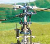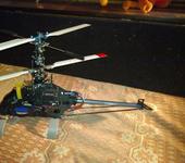 Вот и закончил первоначальный,“черновой” вариант одномоторного соосника.Прилагаю несколько снимков.В-общем,уже летает,пробовал пока дома.Я отказался от варианта переделки Ламы 3:рама и подшипники вала хлипенькие,места маловато.За основу взял раму и тарелку от Ти-Рекса-500,обрезав её снизу на 25мм.Хиленькую обгонку (4мм) верхнего ротора поменял на “неубиваемую” 6-мм от Рекса-450.Тупо копировать немца не стал -не интересно, да и “слоновья” тарелка от 600-ки никак не вписывалась по размерам.Придумал свою конструкцию,пропустив дополнительные тяги сквозь отверстия в тарелке (без всякого вреда для её здоровья).Привод от сервы осуществляется шарнирной системой,похожей на шарнирный затвор “парабеллума”.Всё это выполнено на “поДшЫБниках” и двигается очень легко.Да,и самое главное: лопасти нижнего ротора на маятниковом подвесе.В результате диаметр роторов стал 750мм,подъёмная сила возросла чуть ли не в 1,5 раза (субъективная оценка).И сильно улучшилась управляемость,аппарат стал более предсказуем.Всё это радует.Обязательно поставлю такие же на 2-х моторку,уже и хаб заказал.Ну а теперь о грустном…Хорошо до тех пор,пока не пытаешься менять курс.При перемене курса верт или сильно падает,или наоборот.При первых пробных полётах пулей полетел в потолок (не хуже классики!),пришлось ронять.Отделался сломанными шасси.На фото-сделанные наспех из унитазных труб.Теоретически так и должно быть,т.к. гироскоп воздействует только на нижний ротор через 4-ю серву.Вопрос к “бывалым”-нужен сложный бортовой “аппаратный” микшер,который бы подмешивал во все три сигнала тарелки (шаг,крен,тангаж) сигнал гироскопа.Пробовал комбинацию из 3-х V-tail микшеров (с ХК,трёхбаксовые) - этот вариант не прокатывает,т.к. у них почему-то очень большая задержка,аж до 0,25 сек примерно!Может,в природе существует уже готовое решение.Подскажите,если можно…Самому такую штуку мне не сделать-писать программки не умею.А городить огород на механике-значит,увеличивать и вес,и люфты,и т.д., и вообще неразумно!😃 В-общем,жду “помощь из зала”!!!😵