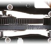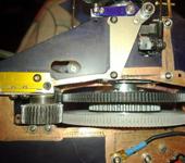 Да,именно ремень.Привожу фотку с какого-то сайта.На ней не видно пиньона движка-так он справа,крутит малую шестерню.Напрасно я её ругал -схема простенькая и надёжная.В случае крэша сыпется малая шестерня (всего ок.$3) и иногда-нижний обгонный подшипник.Но у меня есть желание избавиться от ремня,он достаточно жёсткий,и КПД его ниже,чем у пары шестерёнок.