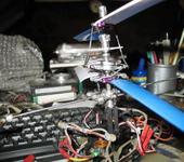 И вертолет с этими деталями, но в конфигурации - флайбар с верху и с дополнительными грузиками - уверенно отрывался от земли, но не хотел висеть и уходил в малоуправляемый полет.