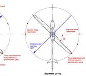 Теперь смотрим на верхний ротор (правая картинка). Не забываем, что он вращается в противоположную сторону. АП2 у нас полностью инвертирована, то есть наклонена в противоположную от АП1 сторону. Точка максимального положительного циклического шага находится на “пол-пятого”, верхняя точка траектории лопастей - на 45 градусов по ходу, то есть СПРАВА, на “3 часах”! Это значит, что верхний ротор отклоняется ПО КРЕНУ!