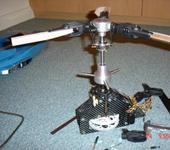 Можете в 2-х словах описать какая у вас схема привода винтов, 2-а мотора или 1? Коллективный шаг есть? Без флайбара как он может быть устойчив, может у вас флайбар-лес система?