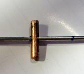 Диаметр оси качания - ровно 3 мм. Взял латунную заклепку того же диаметра - выпилил паз…