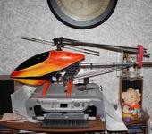 Уже столкнулись с проблемами пришлось переставлять качалки потому что не хватало теги компенсировать реактивный момент лопастей, а там это делается с помощью изменения наклона нижних лопастей! да и гироскоп встроиный в приемник для нега слабоват поставили стационарный футабу 401 и все полетело как по маслу!