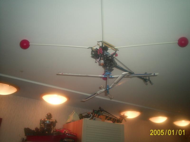 Поздравляю с приобретением!У меня такой же (почти).А как вы умудрились к потолку прилепить?Оригинально!Родной двигатель больше похож на 375Вт.Сервы-надо менять однозначно!А что висит 15 мин.-здорово,у меня сильно меньше,аккум тоже нонаме.А свой я переделываю.Если интересно,подробности здесь-rcopen.com/forum/f96/topic101922/416