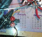 Поставил двигатели - пока не окончательно, только прикинул, влезут ли и как. Влезли, вроде ничего не задевает. Однако одному из них мешают провода. Надо будет выпилить паз в раме небольшой. Установил пиньоны 8Т - самые маленькие какие нашел (в комплекте заодно взял и 9Т и 10Т, посмотрим что получится). Когда пытался поставить пиньон как надо (с маленьким винтиком), при закручивании этого винтика резьба с латунной детали легко срезалась! Неудача. Посадил на синий герметик - вроде держит, сместить пиньон не получается. Затем стал ломать голову над тем как бы обрезать пиньон - уж очень длинный, охватывал обе шестерни. Решил проблему просто: запустил двигатель на максимальные обороты, поднес ножовочное полотно и пропилил до вала. Затем пассатижами снял оставшуюся часть. Получился еще один хороший пиньон на второй двигатель - его же герметиком насадил на вал второго БК. Пробный запуск показал, что все крутится, двигатели разгоняются плавно, обороты не очень высокие. На этом пока и остановился - продолжение следует.