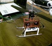 Сначала сделал крепление – пластину из алюминия, в ней 4 отверстия, три для винтов крепления мотора, один вокруг вала (это было до всего, чтобы проверить мотор). Поставил мотор, припаял ESC. Зажал это крепление в тиски, подключил к приемнику и к аккумулятору. Кстати, пластина очень пригодилась – при проточке образуется металлическая пыль, норовящая прилипнуть ко всемы намагниченному, да еще и абразив (см. ниже), внутри мотора он нам совсем не нужен! Пдастина все это изолирует от корпуса мотора.