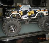 Я не стал покупать расширители колеи, как и советовали, но и грузики в колёса то же не ставил. Был куплен комплект переделки в краулер от HPI. База удлинилась до 32см, поставил рулевые тяги из прута 4мм, поставил аморты 10см., мосты стоят ровно, параллельно земле. Модель заметно потяжелела, ЦТ опустился, но едет всё равно бодро, в поворотах не переворачиваемся, пробовал сегодня заезжать на горку под углом примерно 60градусов, едем уверенно, не переворачиваемся, тормоз держит. Пару фото: