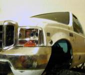 вроде кузов от шоссейки 12 масштаба, шасси от монстрика тож 12 масштаба и хромированые катки шоссейные от 10 масштаба… выглядело забавно, не ездило - у колес крепления слишком большие были, просто так балтались)))