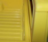 кривой как моя только начинающаяся жизнь, с дырами в 5-7 мм, морда на 4 мм уехала в право, но при этом зазоры убийственны. задняя стенка кривая, с зазорами и кручением винтом,зад ровно (без дыр) не садиться, пришлось изобретать замок, прорези на заднице сделаны для удобства вставки света на пластинке)