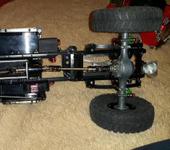 По случаю достались б/у мосты RcChannel. Видно тягу рулевой сервы, сделана из обычной шпильки 3 мм. Практика показала, что шпилька слабая, на тяжелой дороге просто гнется, необходимо заменить на что-то понадежнее