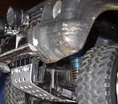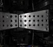 попутно нашел на шкафу в дебрях, пока искал напильник, старый детский конструктор из железа! вуаля! вот тебе и защита картера! из 2 деталей слепил. встали как родные. в конце концов срезал нафиг с 2 сторон “бампер” (квадратная такая хрень, где нормальный бампер прикручивался. на фотках видно)))