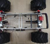 Можно поступить как на Вилли Кинге, положив серву на бок и сделав систему качалок. Можно сделать верхние тяги подвески треугольником к центру, а нижние поднять выше центра моста. На их кронштейне повесить качалки. Только мост выйдет консольно… Иностранцы часто удлиняют базу за счет удлиннения штатных рычагов. Все остальное не меняют. Я свой точно не выброшу. Вещь получилась вполне законченная логически. 😃