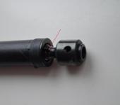 Не понимаю какая разница как половинки кардана вставлены друг в друга, но после того как выставил по этим дыркам задний мост стал вращаться равномерно. Передний кардан кстати был собран правильно поэтому мост вращался нормально.