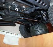 Переворачивать кулаки поворотные ушами назад, чтобы тяга сзади была, но насколько я помню, на аксе с подвеской на тягах это проблематично сделать… У меня на бархане стоят мосты от тамии TLT-01 и подвеска у меня на рессорах, там я эту проблему решил…