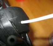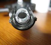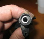 Это трубка алюминиевая из оби.Нашёл дома остатки.Ширина требуемой втулки 5 мм.Просверлил 2.5 сверлом два отверстия.Чтоб не ошибится приклеил втулку циакрином.Резьбу не резал,винт сам себе её сделал.
