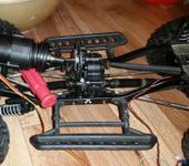 А вариант серву на раму перенести не рассматривали? если ставить максимально близко к бамперу, то должна встать судя по габаритам. А главное, она двигаться не будет, проще будет вкорячить редуктор.
