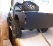 На первой, второй и четвертой фотках- подводка к выключателю противотуманок (под ним же- выемной блок на 3 “ААА”-аккума из “Чип и Дипа”) и два грязезащитных подкрылка из пластиковой папки для бумаг. Третья и пятая фотка- защита подводки к задним противотуманным светодиодам (та же пластиковая папка). Шестая фотка- “кишки” электрики основного света (перед и зад, фотки задних пока нет)- питание от 3 “АА”-элементов. Скажу честно- делал все сходу, намудрил с разводкой, пришлось все прятать под двусторонним скотчем, герметиком и еще, плюс, армированным скотчем. Но уж как получилось, не пинайте. 😃 Предпоследнее фото- виден “холодильник” защиты передних туманок- догадайтесь, из чего. 😉 Последнее фото- общий вид. Увы, ступил и посадил передние фары на “поксипол”. В итоге, он стал отрывать слой краски кузова (изнутри, это видно на фото)… Придется делать какие-то ободки для фар, а так хотелось, чтобы было заподлицо, “как у БРАБУСа”… 😦