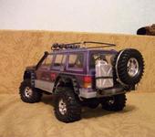 А вот и мой боевой аппарат.Точнее их два. Axial SCX-10 c кузовом Чироки Рэнглер на шасси CR-01. На фото Чироки с прцепом - техничкой. Внутри 4 колеса, балонник, отвертка.
