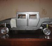 Вот понемногу продвигаюсь. Поставил коробку с мотором, срезал зад. Будет армейский вариант с тентом.