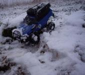 Прошлогоднее фото со старым кузовом. “модель только для дома” Для таких дорог советую разобрать мосты и набить смазкой (я пользую ШРУЗ),загерметить серву , приёмник или герметить или поднять под крышу кузова.