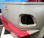 - фото кузова с вырезанным пластиком под фонарём. и запасом пластика по краям, для крепления стекла фары.