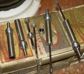 И наконец амортизаторы: Цилиндр-Ф6мм сталь,от антенны.Шток-Ф2мм пруточек сталь тож от антенны, на концах резьбаМ2 .Прокладка резиновая от мебельного доводчика ,остальное точеное стальное.