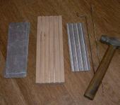 Беру стальной пруток ф2.5мм , молоточек и акуратно продавливаю лист в пазы на деревянном шаблоне, получается профиль с черырмя прогибами для жосткости.