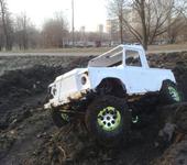 Прокатился:)Очень доволен.Благодаря короткой базе едет везде.Не кувыркается.Ходов подвески хватает сполна.Нашел таки лужу…туда сюда прокатился…капот иногда был под водой…катался катался и мой деф медленно с рывками остановился:)Ну думаю,все,надо копить на новый рег,т.к приемник я запихал в бокс,и загерметил конкретно,а рег хоть и загермеченый но стоит на боксе.Пришел домой,промыл все…открываю бокс-сухо,рег тоже сухой…оказалось в двиг набилось куча гумна,в щетки.Разобрал все,промыл,и обкатал заодно;)