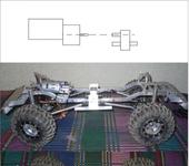 Мотор с редуктором двигать в сторону раздатки, так, чтобы он разошелся с сервой при ходах моста. Потом опускать вниз. Упрешься в А-тяги. Крепления А-тяг на мосту переносим ниже, с помощью куска L-образного профиля. Можно их выгнуть, разнести по сторонам, вариантов куча. Мотор надо опускать как можно ниже, чтобы часть корпуса заходила под раму. Это даст офигительную устойчивость и минимизацию карданных эффектов. Приятно же уверенно ползти с диким креном. И съезд-заезд на горки улучшится.