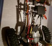 Мотор с редуктором двигать в сторону раздатки, так, чтобы он разошелся с сервой при ходах моста. Потом опускать вниз. Упрешься в А-тяги. Крепления А-тяг на мосту переносим ниже, с помощью куска L-образного профиля. Можно их выгнуть, разнести по сторонам, вариантов куча. Мотор надо опускать как можно ниже, чтобы часть корпуса заходила под раму. Это даст офигительную устойчивость и минимизацию карданных эффектов. Приятно же уверенно ползти с диким креном. И съезд-заезд на горки улучшится.