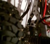 Мотор с коробкой стоит между поперечинами рамы. Сама коробка гораздо длинее редуктора вилли кинга, но все влезло. Правда с рулевой сервой пришлось делать оригинальное решение, с приводом через кардан (на фото он снят). Крепление мотора консольное, держится надежно. Просто так понравилось. Крепление А-тяг к мосту опущено ниже. Раздатка самодельная, отодвинута назад на одно отверстие по штатным креплениям. Результат: до визуально нереальной улучшилась поперечная устойчивость (еще колеса утяжелены по 95 гр). Практически нет карданных эффектов (также валы мостов крутятся в разные стороны).