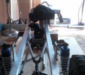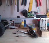 Продолжение процесса постройки подвески.Из детали на второй фотке будет сделана фрикционная пластина. Тяги постарался согнуть так, чтобы защитить кардан. Между делом, нашёл, куда применить остатки краски)))