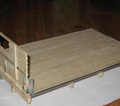 многие увлеклись постройкой грузовиков.вот небольшой фото отчет начала изготовления деревянного кузова для зил157.похожий кузов устанавливался на зил131,зил 4331,газ63,и ранний урал375. деталировка повторяет оригинал практически полностью,собрано основание, передний борт и пол(изготовлено 82металлические и 43деревянные детали а также использовано около 200 булавок для имитации гвоздей)
