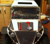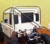 За это время было сделано достаточно много: укоротил кузов и раму, установил лебедки (предварительно сделав ооочень крепкие площадки под них), поменял накладку на капоте на “аля алюминий”, сделал защиту двигателя, поставил подкрылки-брызговики, фары, люстру. Лично мне в живую нравится больше, чем на фото, но все же: