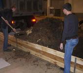 Земля оказалась мерзлая и к утру слегка раскисла, превратилась в грязь и зат опила порядочно пола рядом с песочницей. За разведенную грязюку вокруг трассы был наложен штраф 5000руб.