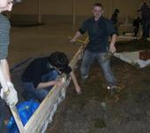 Земля оказалась мерзлая и к утру слегка раскисла, превратилась в грязь и зат опила порядочно пола рядом с песочницей. За разведенную грязюку вокруг трассы был наложен штраф 5000руб.