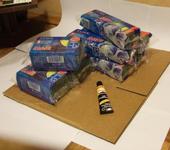 Дальше было принято решение собрать все коробки какие есть в квартире и сложить их в препятствие. Опыт показал, что груда коробок это ужасно неудобно, во-первых коробка должна обладать массой, дабы не выскакивала из под колес (а то получается как-то не копийно, и велика вероятность обвалов, да и трасса постоянно изменяется после каждого заезда), во-вторых очень тяжело объяснить жене, что куча разбросанных коробок - это триал-трасса и у тебя проходит тест драйв нового транспортного средства, а не страдание ерундой, в-третьих в момент зарядки аккумуляторов, когда триал-трасса, все-таки, превращается в кавардак на полу, очень тяжело перемещаться по комнате не задев и не наступив на разбросанные коробки.