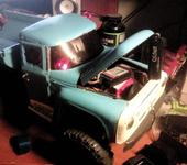 Да, ещё. Можно выкинуть железяку, изображающую салон, и заменить её тонкой алюмишкой на паре болтиков - выиграешь в весе. Если будешь перекрашивать - то кабину лучше красить чуть темнее, а кузов - зелёным, это самая “классическиая” расцветка. Самосвальный кузов я бы не стал оставлять, я бы сделал деревянную (фанерную) грузовую платформу, спереди её крепить прямо на опору кузова парой болтиков М4, на платформе поставить дугу безопасности - и машина станет избражать кроссовый ЗИЛ и просто “заиграет”.