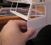 Получается довольно крепкая конструкция. Поначалу меня серьёзно беспокоила надёжность будущей кабины, ибо 1мм полистирол (кто держал в руках, тот поймёт) гнётся даже при небольшом усилии двумя пальцами… Но тем не менее, будучи укреплённым (рёбра жёсткости, итп) получается довольно неплохо, как мне показалось даже лучше, чем однолистовой (благодаря рёбрам жёсткости, кинетическая энергия, при ударах, распространяется по всей конструкции более равномерно, то есть, как такового, концентратора напряжений нет).