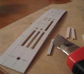 С решёткой пришлось повозиться, 1мм показалось мало, решил наклеить ещё одну пластину под низ… Расчертил, просверлил центровые отверстия и айда маслать ножом…
