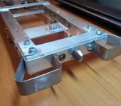 Был взят алюминиевый профиль 20 мм и для создания кривизны, как у оригинала, были сделаны надпилы в полках, потом согнут и проделаны отверстия под буксировочные стрержни и фары. Так как после надпилов конструкця сильно потеряла в жёсткости, Я надставил сверху и снизу текстолитовые пластины, которые скрепил с бампером болтами м2, предварительно подпилив шляпки, для меньшей заметности:
