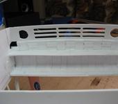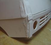 После приклейки решётки самое время заняться латанием ненужных отверстий и возвести боковины передней части: