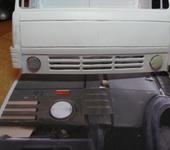 Так как морда КАМАЗа состоит из трёх криволинейных плоскостей, то решил идти сверху. Сначала капот, затем решётка радиатора. Расчертил и вырезал: