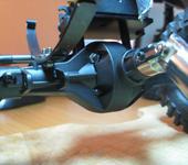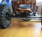 - Двигатель и редуктор смонтированыв ближе задней части рамы так, что стандартного аксиаловского кардана достаточно для соединения заднего моста и раздатки.
