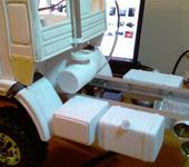 Ну вот, наконец-то работа немного “отпустила”. Было совсем немного времени, чтобы хоть что-то наваять. Итак, кабина была загрунована и покрашена изнутри, установлены сидения и немного облагорожена панель приборов (её фоток пока нет, будут позже). После всталены стёкла и приклеена крыша.